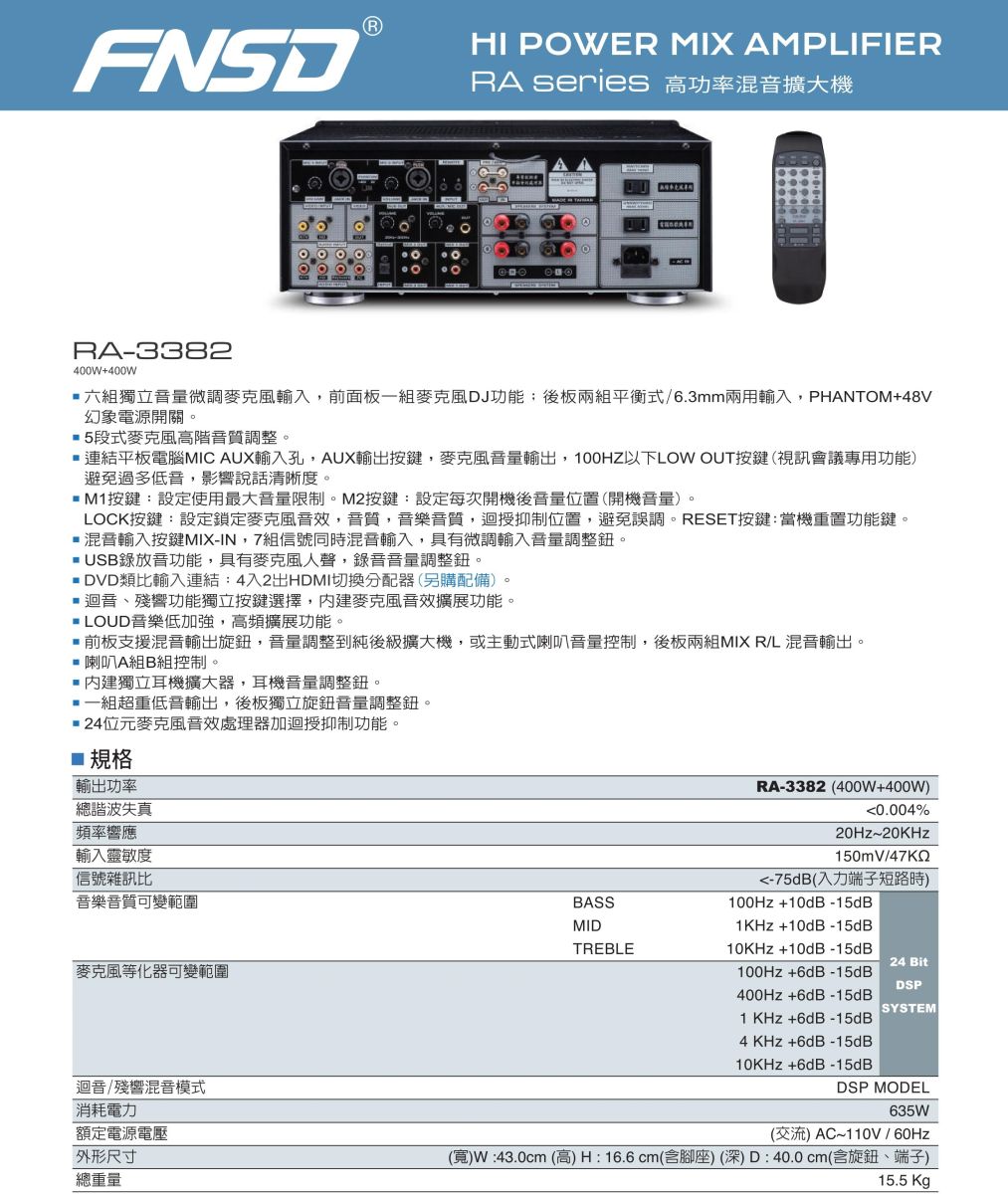 FNSD RA-3381 高功率混音擴大機